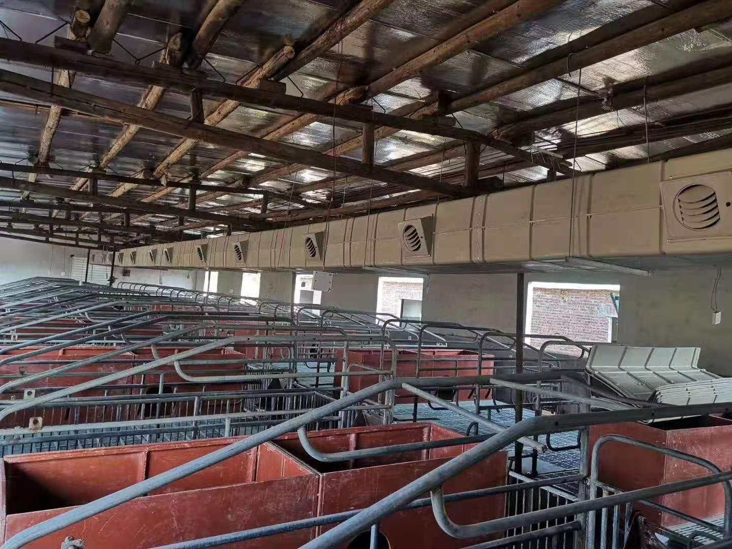 濕簾冷風(fēng)機(jī)管道出風(fēng)口位置能使溫度降低4-10℃,在設(shè)計(jì)時只需考慮采取定位送冷風(fēng)的方式,使風(fēng)口只對母豬定位欄吹涼風(fēng),而對旁邊活動的仔豬則完全不影響,從而達(dá)到母豬定點(diǎn)降溫與節(jié)能的良好效果。