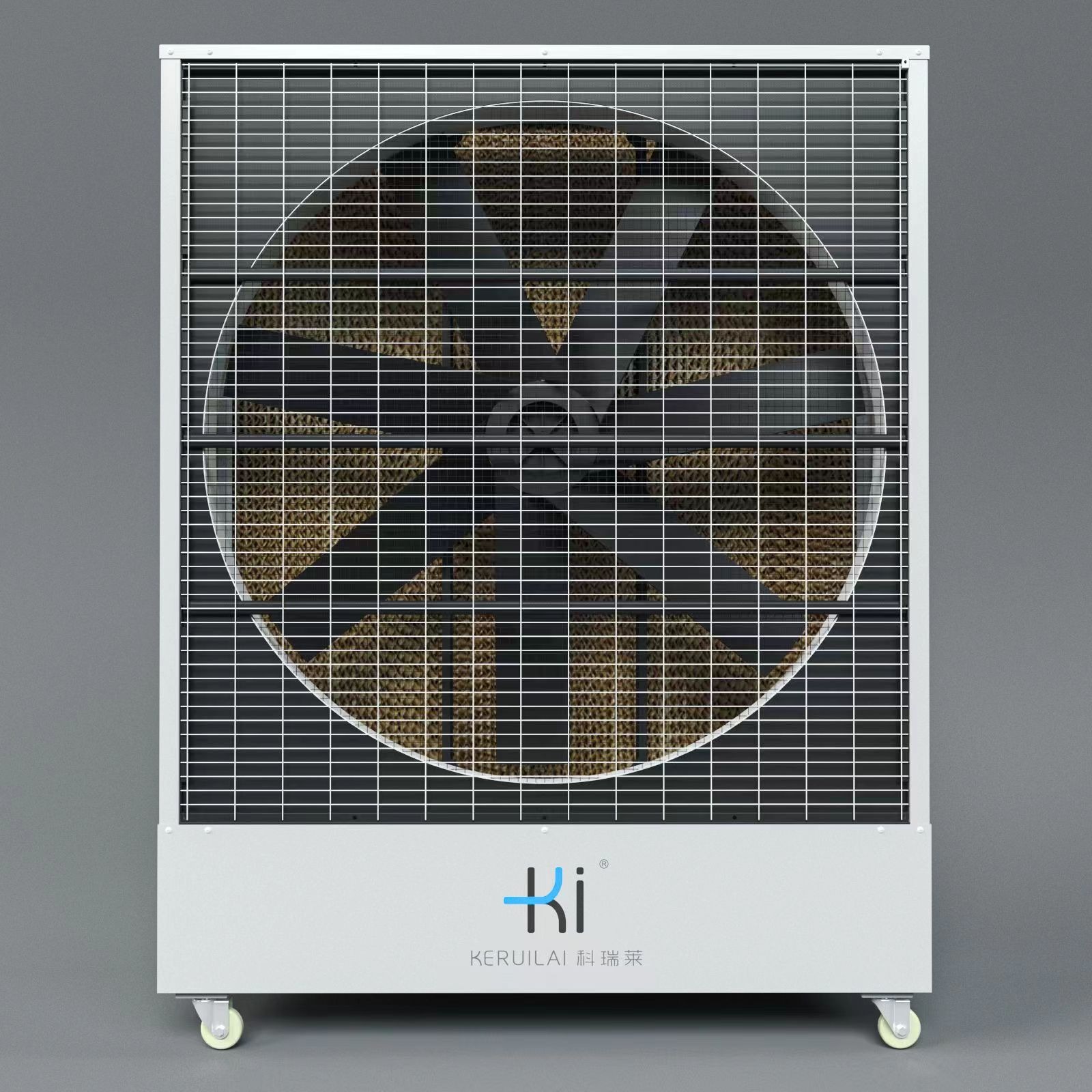 “科瑞萊”蒸發式冷氣機的核心降溫部件是“高效蒸發式濕簾”——純天然多層波紋植物纖維疊合物。根據“水蒸發吸收熱量,蒸發面積影響蒸發效率”這一自然物理現象,通過風機往室內送風,室外的新鮮空氣流經浸水的濕簾后空氣與水份充分接觸同時吸收空氣中的顯熱,從而達到降溫、換氣、除塵、增加室內空氣含氧量的目的,特別適用于高溫車間及人群密集的工作場所。
